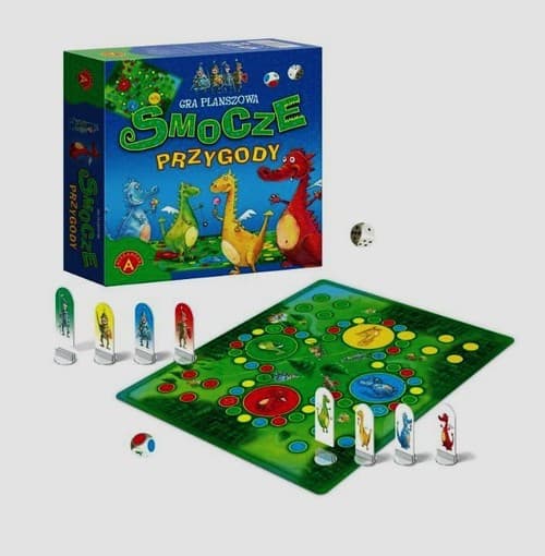 Smoki opuszczając swoje kryjówki starają się dotrzeć jak najszybciej do domu. Droga nie jest jednak bezpieczna. W każdej chwili może pojawić się groźny rycerz. Wówczas ratunkiem jest tylko ucieczka. Kto pierwszy zdoła przeprowadzić gromadkę swoich smoków do ich domu, ten zostaje zwycięzcą. Zawartość pudełka: plansza, 16 pionków smoki, 4 pionki rycerze, kostka liczbowa, kostka kolorowa, instrukcja. 5+ 2-4 graczy