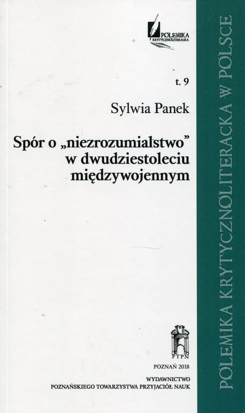 Książka przedstawia jedną z najgłośniejszych polemik krytycznoliterackich dwudziestolecia międzywojennego, zainicjowaną głośnym tekstem Karola Irzykowskiego pt. „Niezrozumialstwo”. Dyskusję z autorem inicjującego spór tekstu podejmują wybitni literaci i krytycy międzywojnia (T. Peiper, Witkacy, J. Ujejski, J. N. Miller, J. Hulewicz, J. Brzękowski, Z. Drohocki, M. J. Wielopolska, W. Pietrzak). Przeprowadzona przez Sylwię Panek analiza zaprezentowanych w tomie tekstów źródłowych pokazuje, że spór o „niezrozumialstwo” należy do najważniejszych dysput krytycznoliterackich międzywojnia nie tylko dlatego, że zyskująca dzięki niemu na rozgłosie kategoria „niezrozumialstwa” współtworzyć będzie - już na stałe - jedną z podstawowych „figur lektury” (W. Bolecki) utworów literackich, ale także z tego powodu, że budowana przeciw poezji ciemnej i hermetycznej kampania Irzykowskiego odsłania nieoczywiste powinowactwo literackich estetyk i pisarskich strategii młodopolskich i awangardowych.