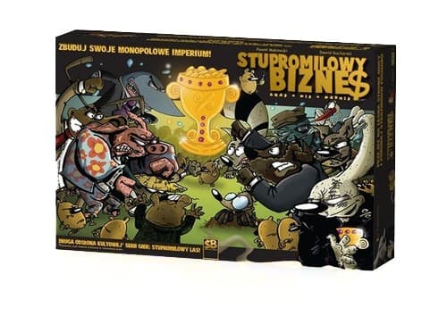 STUPROMILOWY BIZNES – to połączenie gry ekonomicznej, strategicznej z irracjonalnym humorem i odrobiną alkoholu dla dobrej imprezy. STUPROMILOWY BIZNES – to pierwsza gra na rynku, która zyskała tak duże wsparcie marketingowe. Gracze wcielają się w rolę zwierząt – biznesmenów, których celem jest zbudowanie alkoholowego imperium. W trakcie rozgrywki gracze inwestują w irracjonalnie brzmiące biznesy, jak np. „W trzcinie – profesjonalne biuro chrząszczy robiących kuku”, „Mamy Cię Sp. z o.o – fotoradary na każdą okazję” czy „Zagubieni” – produkcja bestsellerowych kryminalnych atlasów geograficznych”. Zyski z biznesów pozwalają rozbudowywać linię do produkcji alkoholu, której posiadanie znacznie przybliża do zwycięstwa w rozgrywce. STUPROMILOWY BIZNES to gra kierowana do bardziej wymagającego gracza. Tym razem alkohol jest jedynie dodatkiem, a mechanika gry umożliwia świetną rozgrywkę nawet bez jego udziału. Gra zawiera: twardą, kaszerowaną planszę 30 kart zdarzeń 12 kart postaci 5 podstawek pod pionki 24 karty biznesów 24 elementy linii produkcyjnych 67 żetonów WOW 3 żetony Krecika Dziurczyńcy kartę informacyjna biznesów kostka zasady gry Legendarna Legenda, Gra tylko dla dorosłych Liczba graczy 3-5