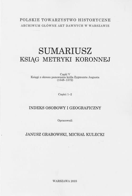 O książce Sumariusz ksiąg metryki koronnej Część V Księgi z okresu panowania króla Zygmunta Augusta (1548-1572) Części 1-2 Indeks osobowy i geograficzny