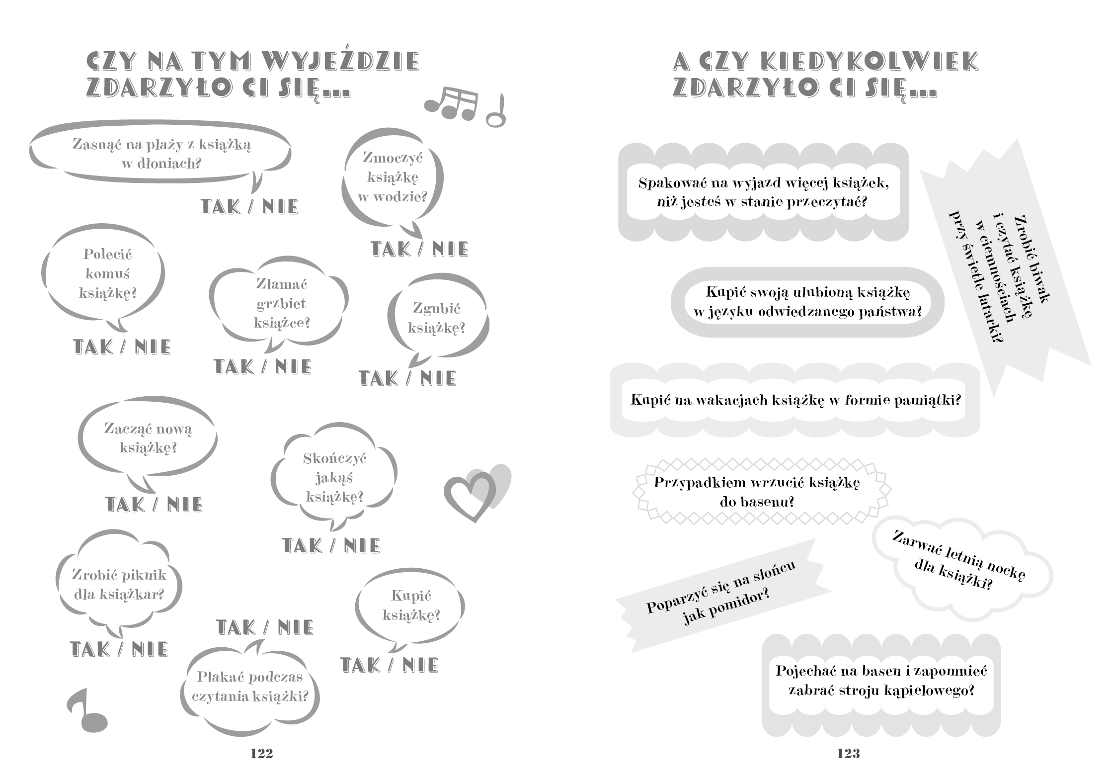 Dziś przedstawiam wam cudowny książkowy notes, który idealnie nadaje się by zabrać go z sobą w wakacyjna podróż. Po za miejscami na recenzję zawiera masę miejsc na własne notatki i ciekawe zadania do wykonania. Mamy np do uzupełnienia mape, na której mamy zaznaczyć gdzie już byliśmy, a gdzie chcemy się udać, napisać jakich autorów udało nam się poznać, czy po prostu narysować swoje stopy. Są też zadania do wykonania typowo podczas podróży, jak skreślanie pojazdów z listy które się zauważyło podczas drogi, czy zaznaczanie co z listy widziałeś na lotnisku, albo w samolocie. Ten dziennik to idealne rozwiązanie na nudę podczas podróży i nie tylko, jest zabawny i uroczy, mam wrażenie że pokocha go każda książkara. ~ współpraca barterowa