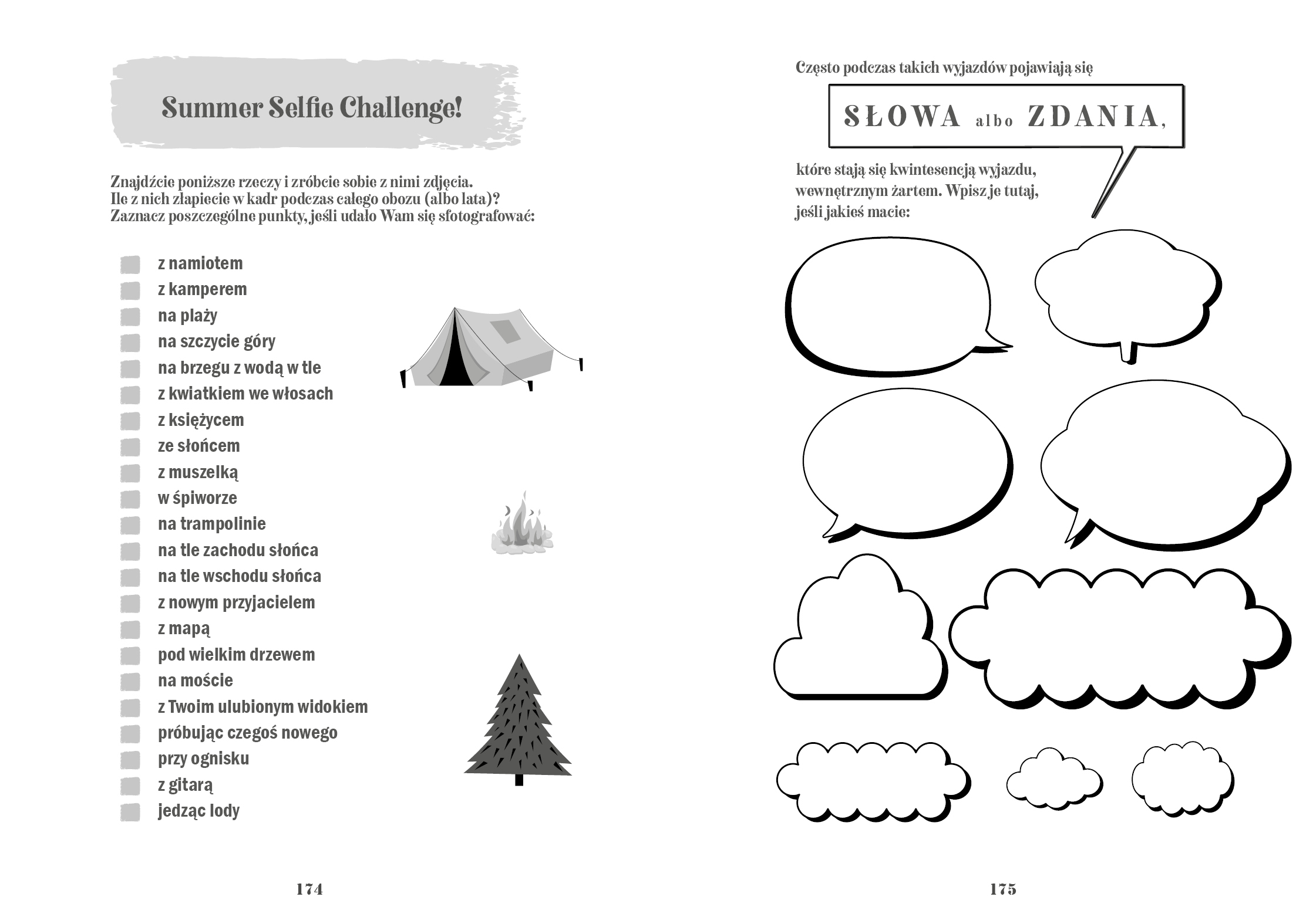 Czas na przygodę! Zabierz swój ukochany Summer BookTok Journal, gdziekolwiek tylko chcesz. Wakacyjny obóz, city break, camping z przyjaciółkami, wielkomiejskie nicnierobienie czy wakacje na wsi – nie ma znaczenia, jak spędzasz lato, Twój journal będzie zawsze z Tobą. Podejmij nowe wyzwania, wypełnij wciągające quizy i szalone listy, dzięki którym nie będziesz się nudzić nawet przez chwilę. Uzupełniaj, rysuj, wklejaj i wycinaj.
