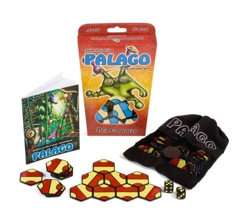 Świat kształtów Palago Poznaj przyjazne stworzenia Palagonii. Obudź w sobie artystę i ułóż świat fascynujących kształtów. Wszystkie płytki są identyczne, ale strategie używane w tej grze są bardzo złożone, a liczba różnych możliwości prawie nieskończona. UKŁADANKI: przyjazne stworzenia Palagonii potrafią ułożyć się w zaskakujące układanki. Mamy nadzieję, że układając je będziecie się bawili równie dobrze jak my, kiedy je wymyślaliśmy. PALAGO dla 2 graczy: Palago jest grą strategiczną dla dwóch osób. Zasady są bardzo proste, a gra nie jest skomplikowana, ale pomimo to można spędzić całe życie ucząc się i doskonaląc przemyślną taktykę. Na przykład im częściej gracz atakuje tym słabsza staje się jego pozycja, jak w starożytnej grze GO. PALAGONIA dla 3-5 graczy: Istnieje również wersja Palagonii dla kilku graczy, którzy łączą się w drużyny, aby ułożyć stworzenia o różnych kształtach. Gra ta wymaga dużej kreatywności i umiejętności strategicznych. Wygrywa gracz z najwyższym wynikiem, ale najlepiej wygrać w dobrym stylu tzn. układając najciekawsze stworzenie Zawartość: 48 płytek Palago Kolor płytek lub niebieski 2 kostki Ilustrowana instrukcja w j.polskim Torba do przenoszenia płytek Wiek grazcy: 5+ Liczba graczy: 1-5 Czas rozgrywki: 20 minut