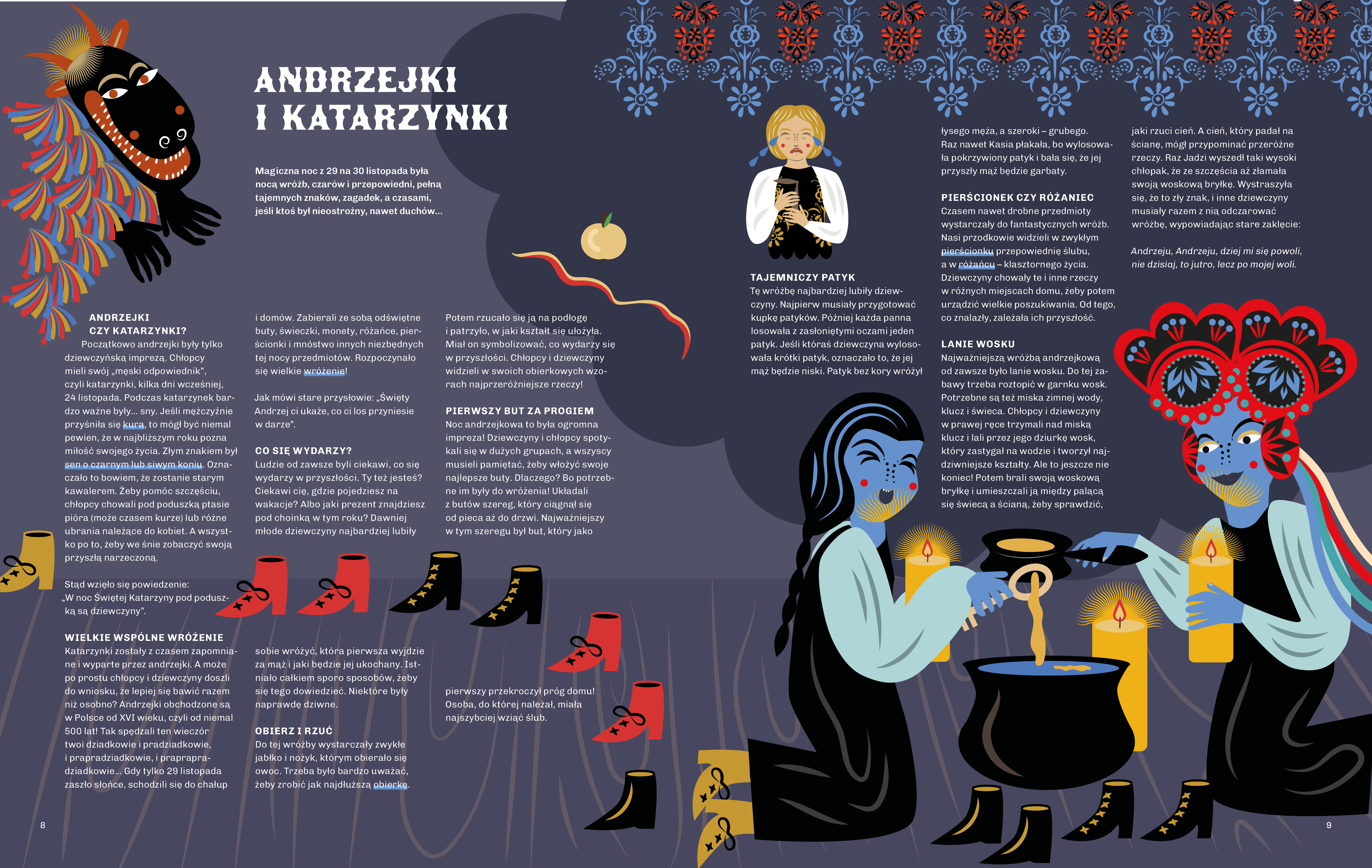 To książka, która zawiera mnóstwo wiedzy na temat polskiego folkloru i zwyczajów świątecznych, a jej treść zaskoczy różnorodnością nie tylko dzieci, ale też niejednego dorosłego. Jest to przystępny przewodnik po magii etnografii, który zachęca do aktywnego celebrowania i poznawania kultury ludowej oraz do odkrywania własnych wyjątkowych tradycji regionalnych, w dzisiejszych czasach może nieco zapomnianych, a przecież wartych uwagi.