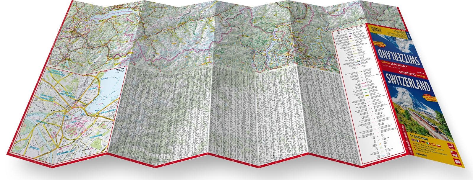 Zabytki Berna, Bazylei i Lozanny, majestatyczne szczyty Alp i malownicze jeziora, dostojne zamki i klasztory... Długo można by wymieniać atrakcje Szwajcarii. Dwustronnie laminowana, wygodna w składaniu i trwała mapa samochodowo-turystyczna pomoże zaplanować udany pobyt w kraju sera i zegarków.
