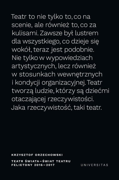 Teatr świata - świat teatru Felietony 2016-2017 Krzysztof Orzechowski Książka