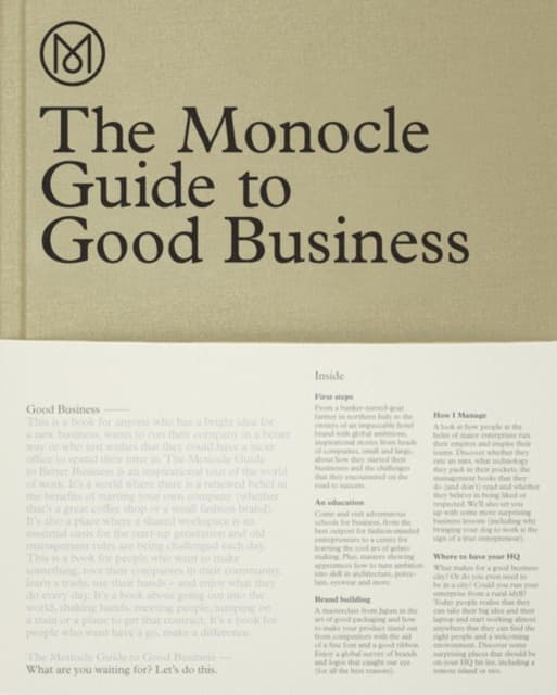 The Monocle Guide to Work follows up on the success of The Monocle Guide to Better Living. The book offers multifaceted perspectives on the world of work today and in the future - from compelling business ideas to inspiring company cultures.