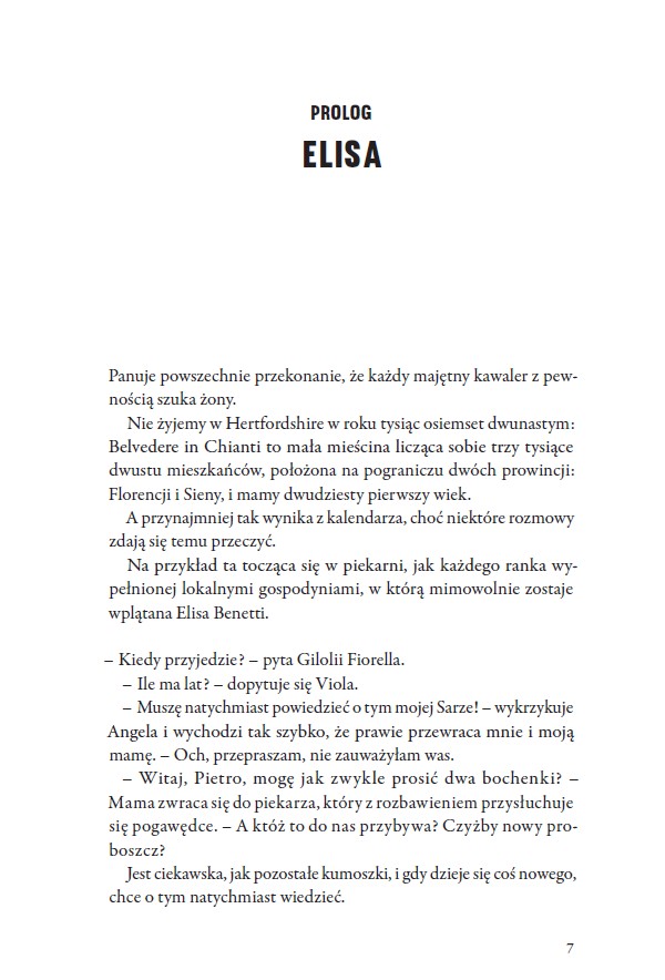 Witajcie w Belvedere in Chianti – urokliwym miasteczku w sercu Toskanii, gdzie każdy zna każdego, a kawalerów można policzyć na palcach jednej ręki. Tutejsze życie toczy się w rytmie festynów, plotek i rodzinnych kolacji. Jednak wszystko się zmienia, gdy w okolicy pojawiają się Charles Bingley – pełen uroku Anglik, który dziedziczy lokalną posiadłość, oraz jego równie atrakcyjny przyjaciel Michael D’Arcy.