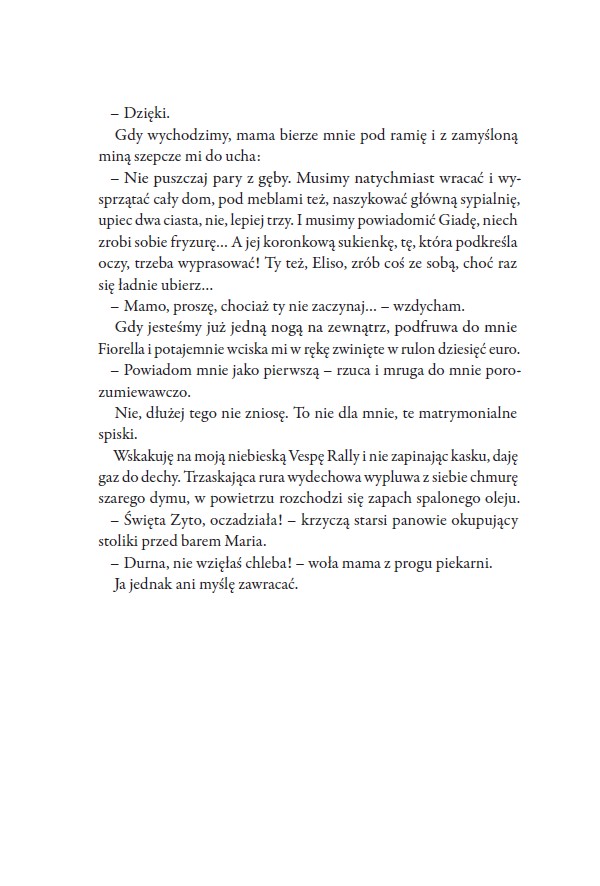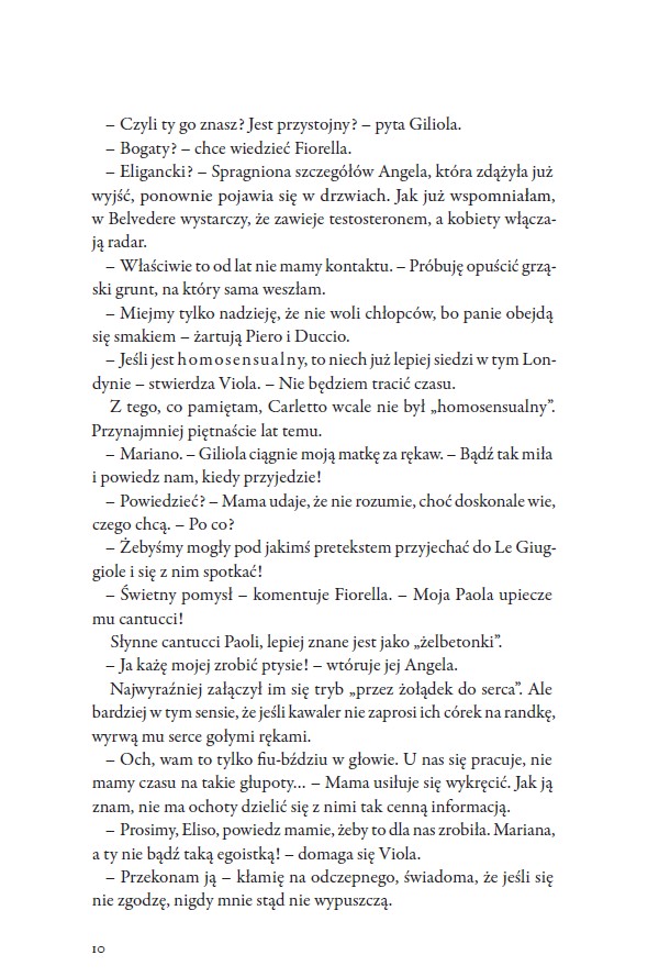 Kolejna książka autorki, którą miałam okazję czytać i dalej jestem oczarowana - a nawet chyba bardziej niż w przypadku poprzednich! Gorąca Toskania, dwoje przyjaciół z dzieciństwa i sekrety kładące cień na przyszłości. Elisa to kobieta, która nie boi się ciężkiej pracy a winnica to całe jej życie, jej pasja. Szkoda tylko, że nie należy ona do niej a widmo sprzedania willi z winnicą bogatemu Rosjaninowi wisi niczym czarne chmury. I jeszcze bardziej boli to, że planuje on teren zrównać z ziemią dla luksusowego pola golfowego. Może by to nie bolało aż tak bardzo, gdyby za znalezieniem kupca nie stał ON. Michael, jej przyjaciel z dzieciństwa, jej bliska osoba, która mogłaby być kimś więcej... Podoba mi się ogrom humoru w tej historii, od pierwszych słów autorka mnie rozbawiła i tak pozostało do końca. Akcja była dynamiczna, stale się coś działo i mimo, że napięcie se*sualne ciągle się unosiło w powietrzu to nie przytłaczało całości fabuły i jej nie dominowało. Przyznam, że zostałam zaskoczona co do ojca córki Elisy, spodziewałam się, że jest nim ktoś inny więc brawo dla autorki za zmyłkę. Czytając książkę czuć słońce, zapach wiejskiej sielanki i winogron oraz oczywiście najlepszej na świecie, włoskiej kuchni. Podążamy z Elisa i Michaelem nie tylko przez Belvedere ale też przez ich życie, poznajemy to jacy są aktualnie i to, jacy byli jako dzieci, kiedy wszyscy wydawali się równi. Z uśmiechem na ustach i z prędkością światła chłonęłam tę historię. Uśmiałam się nie jeden raz, zwłaszcza przy próbach swatania miejscowych młodych kobiet z mężczyznami spoza Belvedere, do tego wzruszyłam się także nie jeden raz i zżyłam się z bohaterami. Mam wrażenie, że to jedna z najlepszych książek autorki, dopracowana, trzymająca w zainteresowaniu i przyciągająca jak magnes. Nie brakuje ciężkich tematów ale są one podane w sposób niezwykle przystępny i ściśle wplecione w fabułę, która się spina w jedną całość. Życie to nie bajka i nasi bohaterowie doskonale o tym wiedzą ale co, jeśli jedno żyje swoim życiem a drugie stara się żyć życiem kogoś innego? Zakończenie pozostawiło mnie w lekkim zawieszeniu i teraz się zastanawiam czy będzie może kontynuacja? Flow Books