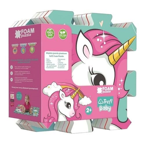 Edukacyjna układanka puzzlo - pianka to zestaw dużych, miękkich, bezpiecznych, kolorowych puzzli, z których można budować figury przestrzenne, np. kostkę lub pudełko. Puzzle piankowe mogą także posłużyć jako miękka mata na podłogę. Zabawka uczy spostrzegawczości, rozpoznawania kolorów i kształtów, budowania figur przestrzennych, zabawy z wyobraźnią. Dla zachowania czystości puzzle piankowe można przetrzeć mokrą ściereczką.