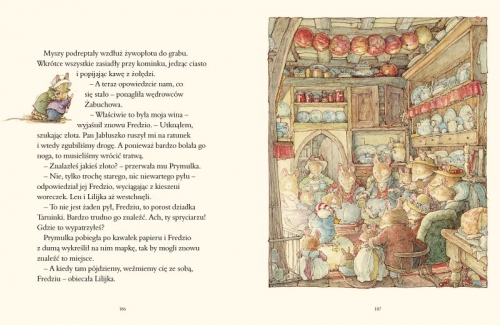 Niezależnie od tego, czy macie dzieci, czy też zdarza Wam się od czasu do czasu pielęgnować dziecko w sobie, dzisiaj Waszej uwadze polecam książkę „W Jeżynowym grodzie".To jest tak cudowna, ciepła i fantastyczna książka, że natychmiast przywołała u mnie wspomnienia dzieciństwa.Mieszkańcami tytułowego Jeżynowego Grodu są Myszki, którym zostały nadane cechy ludzkie i ludzkie motywy postępowania. Obserwujemy ich codzienne zmagania, które zdeterminowane są porami roku. Przeczytamy tutaj o przyjęciu niespodziance organizowanej w wielkiej tajemnicy przed solenizantem, o gromadzeniu zapasów na zimę, o poszukiwaniu prymulki, która zagubiła się podczas jesiennych zbiorów, czy o zabawach na śniegu...Zdecydowanie podczas lektury na pierwszy plan wysuwa się połączenia prostoty, spokoju i niczym nie zmąconej radości. Takiej szczerej, którą możemy usłyszeć czytając poszczególne fragmenty książki. Do tego niesamowite ilustracje, które zwrócą uwagę najbardziej wybrednego czytelnika i są kwintesencją staranności i włożonego w nie serca...Proszę, pozwólcie sobie na wycieczkę do świata bajki i przekonajcie się jakie magiczne momenty Was tam czekają... To jedna z tych książek do których chętnie wraca się co jakiś czas...
