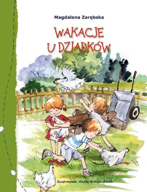 Trojaczki Laura, Tymek i Amelia wyjeżdżają do dziadków na wieś na całe wakacje. Trochę będą tęsknić za rodzicami, którzy zostali w mieście, jednak szybko zajęcia, z którymi nie miały do tej pory do czynienia, całkowicie zajmą im czas. Kupowanie małych kurczaków na targu, pielenie ogródka, pomoc babci przy sprzątaniu kościoła okażą się równie atrakcyjnymi przygodami jak wyprawa do lasu po poziomki, jazda pociągiem czy spływ kajakowy. Aż żal będzie wracać do miasta!Szczegółowe informacje na temat książki Wakacje u dziadków
