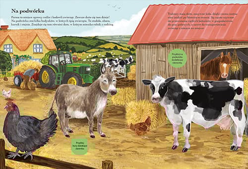 Książka w KRÓTKIEJ i PRZYSTĘPNEJ formie prezentuje sylwetki wybranych interesujących ZWIERZĄT MIESZKAJĄCYCH NA WSI. Dziecko nie tylko może o nich PRZECZYTAĆ i zobaczyć, jak WYGLĄDAJĄ, lecz także przyklejać naklejki. Na końcu książki została umieszczona lista kontrolna, na której dziecko może zaznaczać zwierzęta, które udało mu się spotkać na wsi.