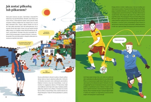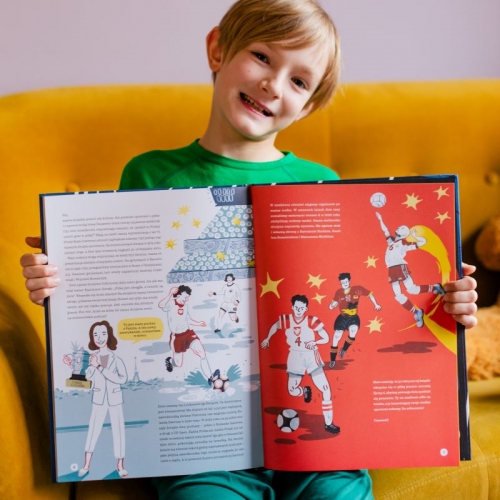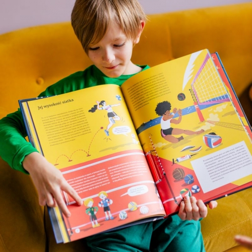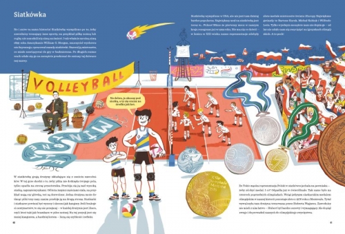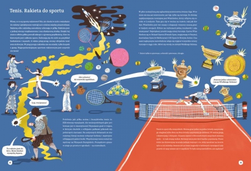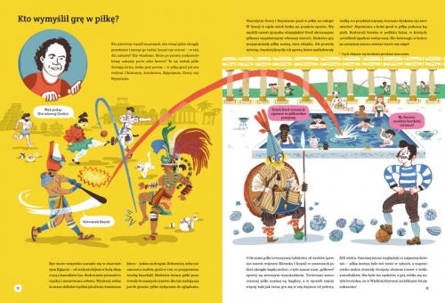 Przywitałem Was rymowanką, ale wiecie, co jest prawdziwą poezją? Sport! Łączy ludzi, daje mnóstwo radości, rozwija ciało i duszę. Nic dziwnego, że pierwsze piłki można wypatrzyć już na starożytnych obrazkach, a opowieści o różnych „piłkosportach” przewijają się przez historię Azteków, Rzymian, starożytnych Greków i wielu, wielu innych ludów. Co takiego ma w sobie ten okrągły przedmiot, że towarzyszy Wam, tak jak towarzyszył Waszym rodzicom, dziadkom, a nawet prapraprapraprapradziadkom? Najczęściej po prostu powietrze! Chociaż istnieją też piłki, które są w środku wypełnione czymś o wiele cięższym. Jednak piłki i piłeczki to znacznie więcej niż tylko powietrze uwięzione w materiale. Zapewniają sportowcom wieczną chwałę, kibicom dają rozrywkę, a odgłosy gry w piłkę niosą się po całym świecie, tworząc uniwersalny język sportu, w którym dogadacie się z kolegami z Japonii, Stanów Zjednoczonych, Wietnamu czy Brazylii! Właśnie dlatego zabiorę Was dziś w wielką podróż po świecie piłek, które można kopać, rzucać, uderzać i nosić pod pachą! /fragment książki/