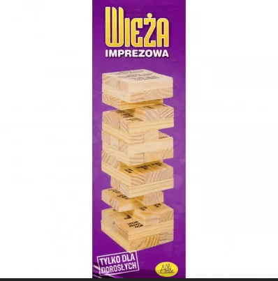 To nowa odsłona tradycyjnej Jengi w wydaniu na imprezę. Zasady gry są podobne, chodzi o to, żeby ostrożnie wyciągać klocki. Jednak na każdym klocku są zapisane zadania, które należy wykonać. Za niewykonanie zadania trzeba oddać fant. Przed rozpoczęciem gry, zawodnicy ustalają zadanie główne czyli zadanie, jakie będzie musiał wykonać zawodnik, który zburzy wieże z klocków. Przed grą każdy z graczy musi się wyposażyć w kieliszek/szklankę napoju. Gra TYLKO dla dorosłych graczy +18 Gra zawiera 48 klocków z zadaniami. Czas rozgrywki – 30 minut Minimum 2 graczy
