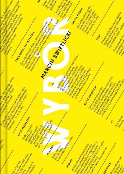 Wybór Marcina Świetlickiego to historia opowiedziana w 444 wierszach ułożonych chronologicznie od końca lat siedemdziesiątych minionego wieku po współczesność. Na Wybór składają się teksty dziś już kultowe, którymi mówi kolejne pokolenie czytelników, ale też te mniej znane, rozproszone, zapomniane. „Powiedzmy, że chciałbym, żeby akurat te wiersze użyte w tej książce po mnie zostały” – napisał we wstępie Marcin Świetlicki. Wybór to historia o jednostce, ale i o tym, co ową jednostkę otaczało i osaczało. To cztery dekady starć wewnętrznego z zewnętrznym. Wzloty i upadki. Miłości i nienawiści. Wiersze i piosenki. Poezję robi się przeciw. Poezja jest ryzykiem. Poezja jest odwagą. Poezja jest niebezpieczna napisał przed laty Marcin Świetlicki i zdania nie zmienił. Wybór Świetlickiego to autorskie spojrzenie na własną twórczość, zachęca do przyjrzenia się powracającym tematom, motywom, gestom. Tę książkę można czytać na wiele sposobów, nie tylko od początku do końca czytelnik może dokonać tu własnego wyboru. To także jak zaznacza Autor historia moich wyborów, trafnych i nietrafnych. 24 grudnia 2021 roku Marcin Świetlicki skończy 60 lat. I nie jest to żadna graniczna data, ale odnotowuje ją ta osobista i szczególna książka.