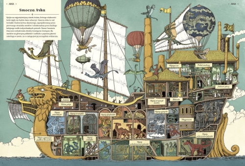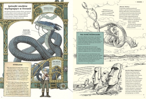 Lektura adresowana jest do młodszych czytelników, chociaż myślę, że jest duża szansa iż zainteresuje również nieco starszych miłośników fantasy. Autorka przybliżyła w niej czytelnikom wiele fascynujących ciekawostek o smokach wywodzących się z różnych zakątków świata. Przypomniała nam tym samym, że smoki są stworzeniami bardzo różnorodnymi. W zebranych przez nią historiach jawią się bowiem zarówno miniaturowe jak i olbrzymie bestie, smoki w różnych kolorach, te przyjazne człowiekowi i okrutne, jednogłowe i jak hydry posiadające kilka głów...Z tą publikacją przemierzymy świat. Przewodniczką w naszej podróży będzie strażniczka smoków, a środkiem transportu smocza arka, na pokładzie której poza wyspecjalizowaną załogą mieszka również kilka wyjątkowych smoków z różnych stron świata. Celem naszej podróży jest misja poszukiwawcza mająca na celu odnalezienie zagrożonego wyginięciem smoka niebiańskiego. W czasie jego poszukiwań strażniczka opowie nam o innych smokach, zarówno tych z arki jak i tych żyjących w najróżniejszych zakątkach świata zdradzając przy tym niejedną smoczą tajemnicę. W ramach poszukiwań natomiast na kartach książki znaleźć można kolejne wskazówki prowadzące nas małymi kroczkami do celu podróży. Jeżeli więc macie ochotę pobawić się w tropicieli smoków i nie boicie się przygód wskakujcie na arkę i dołączcie do jej niezwykłej załogi...Strażniczka w swoich opowieściach przybliży nam sylwetki i zwyczaje najpopularniejszych smoków Oceanii, a w szczególności orma oraz węży i smoków głębinowych mieszkających w Rowie Mariańskim. Następnie przeniesie nas do skutej lodem Antarktyki, gdzie żyją smoki zagrożone wyginięciem, Ameryki Południowej, w której żyją najbardziej różnorodne smoki w tym mityczne hydry, Ameryki Północnej, gdzie smoki znalazły idealne miejsce do gniazdowania na dużych otwartych przestrzeniach, Europy, w której swoje korzenie mają liczne legendy o smokach z lasów i puszcz, gorącej Afryki i mieszkających w niej smokach dwuskrzydłych, a na koniec do Azji i niezwykłych smoków chińskich.Okazuje się więc, że smoki są wszędzie na szczytach gór, w mrocznych jaskiniach czy głębinach oceanów. Wiele z nich zostało zobrazowanych na kartach książki dzięki czemu możemy się im przyjrzeć i poznać najbardziej charakterystyczne cechy każdego z nich. Ilustracje są rewelacyjne, trochę tajemnicze, czasem nawet mroczne. Doskonale oddają klimat lektury, przykuwają wzrok, wręcz magnetyzują czytelnika."Wyprawa po smoki. Dołącz do misji i ocal najbardziej niezwykłego smoka na świecie" to fantastyczna książka o niezwykłych magicznych stworzeniach z różnych części świata. Ciekawi was jaki stwór strzeże gigantycznych kamiennych posągów na Wyspie Wielkanocnej? Które smoki żyją najdłużej, a które są tak małe, że podobnie jak motyle odżywiają się kwiatowym nektarem? Niebywała jest to publikacja, bo i temat jaki porusza owiany magią i tajemniczością przyciąga do lektury i nie pozwala zbyt szybko o niej zapomnieć ;)Ogromnie wciągnęła nas ta książka. Jako fani legend, mitów i dinozaurów dołączamy do miłośników smoków i z fascynacją odkrywamy wraz z nią te niebywałe stworzenia do czego i was gorąco zachęcamy ;)