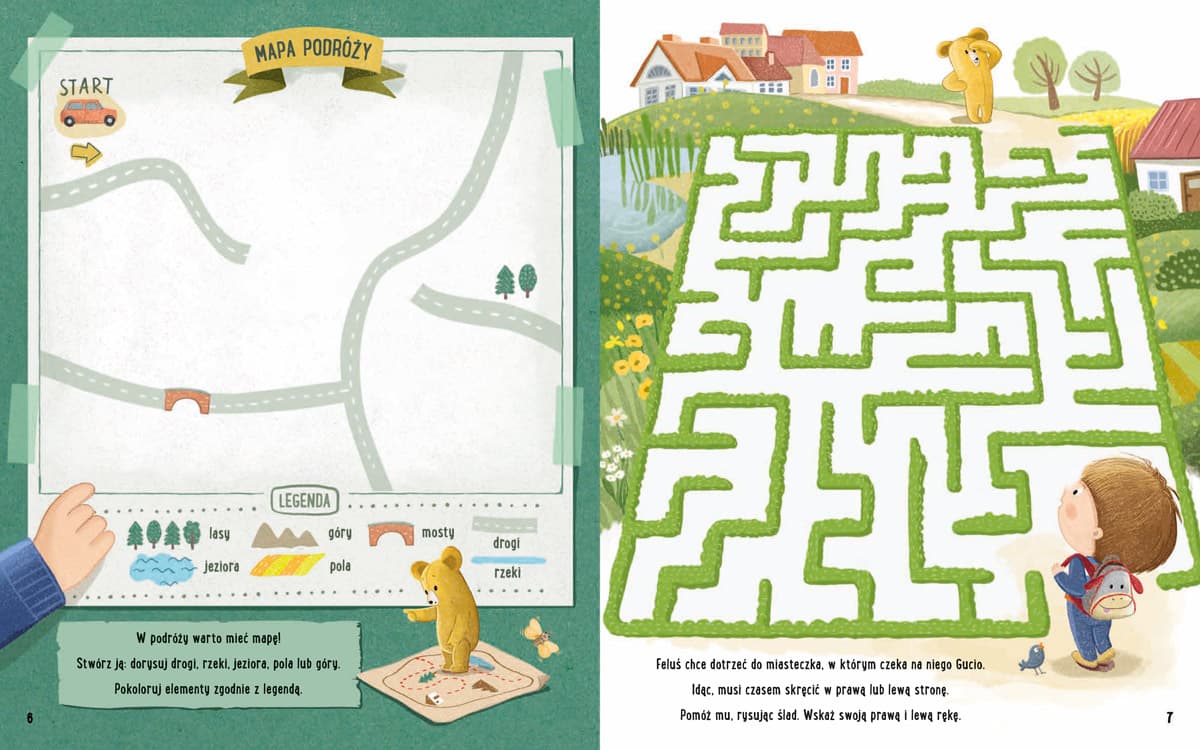Kreatywny zeszyt dla najmłodszych. Krótka historyjka przedstawiona na początku książeczki stanowi punkt wyjścia do zabaw zawartych na dalszych stronach. Zeszyt zawiera aktywności dotyczące czytania, słuchania, myślenia matematycznego i logicznego oraz ćwiczenia na spostrzegawczość, a przede wszystkim ćwiczenia wspierające pracę rąk (grafomotoryczne), dzięki czemu w naturalny sposób wspiera rozwój dzieci. Tom „Zabawy z Felusiem i Guciem. W podróży” przeznaczony jest dla dzieci w wieku 5–6 lat. Wydanie z naklejkami kolorowymi i do kolorowania! Katarzyna Kozłowska – absolwentka pedagogiki specjalnej Uniwersytetu Adama Mickiewicza oraz edukacji artystycznej Uniwersytetu Artystycznego w Poznaniu. Nauczycielka wychowania przedszkolnego. Autorka bestsellerowej serii „Feluś i Gucio”, w której kładzie nacisk na rozwój emocjonalny dziecka, odwołując się do jego przeżyć i sposobu poznawania świata. Marianna Schoett – ilustratorka książek dla dzieci. Ukończyła Państwowe Liceum Sztuk Plastycznych w Bydgoszczy, a następnie kontynuowała naukę na Wydziale Sztuk Pięknych UMK w Toruniu. Rysowanie to od zawsze jej hobby. Już od pierwszego tomu Feluś i Gucio na stałe wpisali się w jej codzienne życie i wytyczają jego rytm, od pewnego czasu także jako bohaterowie gier i zabawek. Nadawanie kształtów kolorowemu światu Felusia i Gucia to obszar, w którym czuje się kompletnie spełniona! Sukces serii przyjmuje z wielką radością, bo właśnie zawsze chciała ilustrować książki. Powyższy opis pochodzi od wydawcy.Szczegółowe informacje na temat książki Zabawy z Felusiem i Guciem W podróży