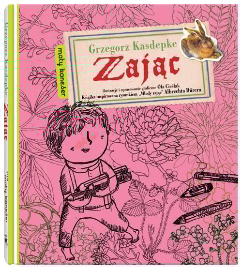 Nowość w serii „Mały Koneser”! „Zając” to efektowne połączenie dowcipnego tekstu Grzegorza Kasdepke, wdzięcznych rysunków Oli Cieślak i klasycznej sztuki mistrza niemieckiego renesansu Albrechta Dürera. Co to znaczy, że pan Stefek ma plecy? Dlaczego nie wolno bawić się białym misiem? I po co chodzi się na polowania? Gdy jest się dzieckiem, niełatwo zrozumieć niektóre sprawy dorosłych. Ale zawsze można spróbować – i zobaczyć, co z tego wyniknie... Słynny rysunek Albrechta Dürera zainspirował Grzegorza Kasdepke do stworzenia dowcipnej historii o chłopcu, który zrozumiał więcej, niż mu się wydawało. Serię „Mały Koneser” tworzą opowiadania inspirowane wybitnymi dziełami polskiego i światowego malarstwa. Każdy tom zawiera jedną historię pomysłowo nawiązującą do konkretnego obrazu, który – jako motyw przewodni ilustracji – łączy się z fabułą w intrygującą całość. Grzegorz Kasdepke (ur. 1972) – autor ponad 30 książek dla dzieci i młodzieży, twórca słuchowisk radiowych. Przez wiele lat był redaktorem naczelnym pisma „Świerszczyk”. Za swoją twórczość literacką dla młodych czytelników otrzymał wiele nagród i wyróżnień. Ola Cieślak (ur. 1981) – graficzka i ilustratorka. Studiowała na Wydziale Grafiki Akademii Sztuk Pięknych w Warszawie (dyplom w Pracowni Projektowania Książki). Ma na swoim koncie kilka wystaw indywidualnych oraz dwie książki autorskie: Love Story i Od 1 do 10. Zilustrowała Powidoki Tiny Oziewicz.