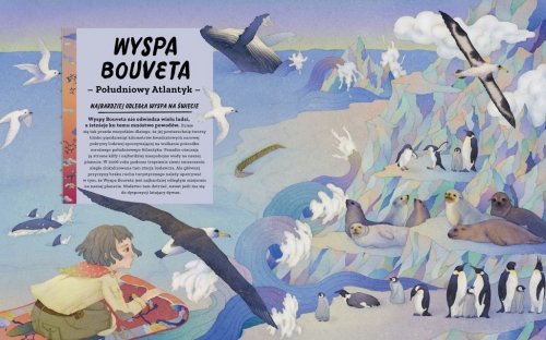 Dziś zapraszam Was w podróż latającym dywanem do wyjątkowych miejsc na świecie, niedostępnych dla turystów. Razem z kilkuletnią dziewczynką i jej materiałowym, magicznym przyjacielem odwiedzimy 19 niezwykłych lokalizacji od najbardziej odległej Wyspy Bouveta i Wyspy Węży przez Strefę 51, Tajne Archiwa Watykanu, Grobowiec Czynngis-Chana po Globalny Bank Nasion, Sypialnię Królowej Anglii i Air Force One oraz wiele innych bardzo atrakcyjnych miejsc. Każdej lokalizacji poświecono po cztery strony A4, które wypełniają piękne ilustracje autorstwa Whooli Chen, krótki opis miejsca i ciekawostki o nim (zazwyczaj po 7-8) zredagowane przez Patricka Makina. Czytanie tej książki jest jak przeżywanie przygody podczas, której możemy się dużo nauczyć. Idealna do czytania wspólnie z dzieckiem. Jej lektura sprawi dużo przyjemności także dorosłym, bo miejsca nie są oczywiste, niektóre były mi wręcz nieznane, a opisy bardzo interesujące. Twarda oprawa i duży format oraz interesująca treść powodują, że książka będzie doskonałym prezentem dla dzieci nawet do 12 roku życia.Od wielu lat z przyjemnością sięgam po pozycje Wydawnictwa Znak i jestem zachwycona, że podjęli się wydawania książek obrazkowych. „Zakazane miejsca na świecie" są wręcz doskonałym debiutem na tym polu.