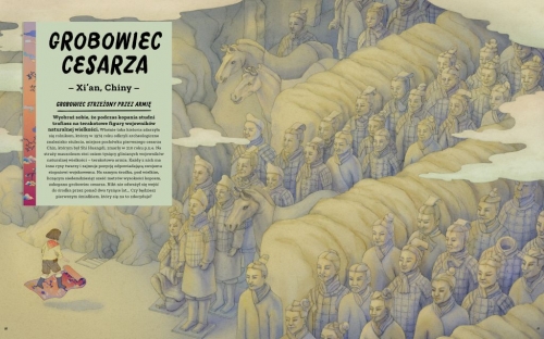 Książki, które w piękny i fascynujący sposób opowiadają młodym czytelnikom o wyjątkowych miejscach na świecie, są w mojej biblioteczce zawsze mile widziane. Nie umknęła mojej uwadze pozycja, która ukazała się w ubiegłym tygodniu - „Zakazane miejsca na świecie. Podróże magicznym dywanem" - przepiękny picturebook napisany przez Patricka Makina i zilustrowany przez Whooli Chen. Cieszę się, że Znak Emotikon decyduje się na wydawanie takich książek, które rozbudzają nie tylko ciekawość świata, ale też wyobraźnię. Książka jest przeznaczona dla czytelników powyżej szóstego roku życia, jednak moi pięciolatkowie podeszli do niej z dużym entuzjazmem.Książka prezentuje dziewiętnaście miejsc na świecie, do których dotrzeć nie jest łatwo, ani też bezpiecznie. Chyba że ma się latający dywan - wtedy wszystko jest możliwe. Można podejrzeć tajne archiwa Watykanu, sypialnię angielskiej królowej, wnętrza Air Force One, a nawet Bursztynową Komnatę, której lokalizacji przecież ciągle nie ustalono. Można też odwiedzić nieprzyjazne tereny Doliny śmierci na Kamczatce, wyspę węży, głębiny Rowu Mariańskiego, niedostępne wyspy i wulkany, ale też owianą tajemnicą i domysłami strefę 51 albo Globalny Bank Nasion. Każde z tych miejsc zaprezentowano na dwóch rozkładówkach - na pierwszej nadrzędną rolę gra ilustracja uzupełniona podstawowymi informacjami omawiającymi dane miejsce, a na drugiej znajdziemy kilka akapitów opisujących ciekawostki związane z tematem, jak też kolejne ilustracje, choć już mniejsze i wybiórcze.Ogromny tom w twardej oprawie, barwny i przebogaty, jest doskonałą propozycją do wspólnego oglądania dla dzieci i dorosłych, którzy również poszerzą swoją wiedzę o świecie. Prowokuje do zadawania wielu pytań (doświadczyłam na własnej skórze). Prezentuje wiele dość upiornych miejsc - jak paryskie katakumby, wypełnione ludzkim czaszkami albo opuszczone miasto czy park rozrywki - trzeba mieć tego świadomość, że wrażliwe dzieci może nie powinny zaglądać na każdą stronę tej książki.Czytając i oglądając książkę miałam wrażenie przeżywania niezwykłej przygody, podglądania niedostępnych miejsc z perspektywy lotu ptaka. Ważniejsza jednak jest ta iskra fascynacji, która pojawiła się w oczach i pytaniach moich dzieci. Widać, że Znak Emotikon, do tej pory proponujący wybitną literaturę, jeszcze wyżej podniósł poprzeczkę.