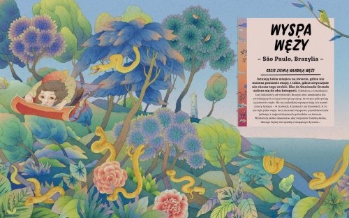 Obudzić się pewnego ranka i ruszyć w nieznane. Od tak. Kto by nie chciał? A gdy użyję przymiotnika "zakazane" to wyprawa nabiera pikantnego posmaku. Literatura dziecięca pozwala na takie szaleństwa. Skoki w przepaść. A wszystko w bezpiecznej przestrzeni - by zaspokajać rodzące się pragnienie odkrywania. Mam nadzieję, że również w nas została go choć garść. Pielęgnujmy je, razem przeżywając przygody, przemierzając lasy, parki, ścieżki, ale i podsuwając literaturę będącą oknem na świat, przez które można wiedzieć więcej. Oto więc kolejna lektura - okno.W książce przedstawiono dziewiętnaście autentycznych miejsc, znajdujących się na wszystkich skrajach ziemskiego globu, do których człowiek nie ma wstępu lub jest on bardzo ograniczony. My - czytelnicy jesteśmy więc w grupie tych uprzywilejowanych. Wchodzimy na wulkan Arenal, ruszamy na wyspę opanowaną przez węże, odwiedzamy grobowiec Czyngis-Chana, Air Force One i Globalny Bank Nasion, wreszcie podziwiamy Bursztynową Komnatę. Jest tu dreszczyk emocji, bo jednak ludzkie stopy nie są tam częstymi bywalcami.Przepiękna ilustratorska przestrzeń, która nie stanowi tu dodatku, ale jest głównym nurtem rzeki wyobraźni. Rozbudza żyłkę podróżnika. Dodaje odwagi. Edukuje bez poczucia, że to się właśnie dzieje.