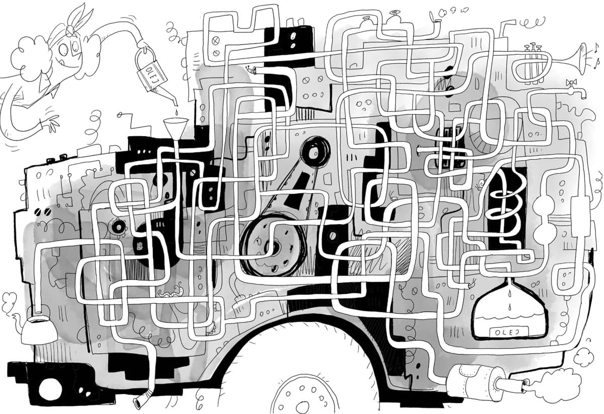 Oprócz rysowania pasjonuje się muzyką. Komponuje i pisze teksty piosenek. Jego pierwszy zespół to trójmiejska formacja Pomidory. Poza nagrywaniem projektów solowych w studiu zbudowanym w szafie gra w grupach The Paperbags, The Waterforge oraz Kretti & the Little Moles.
