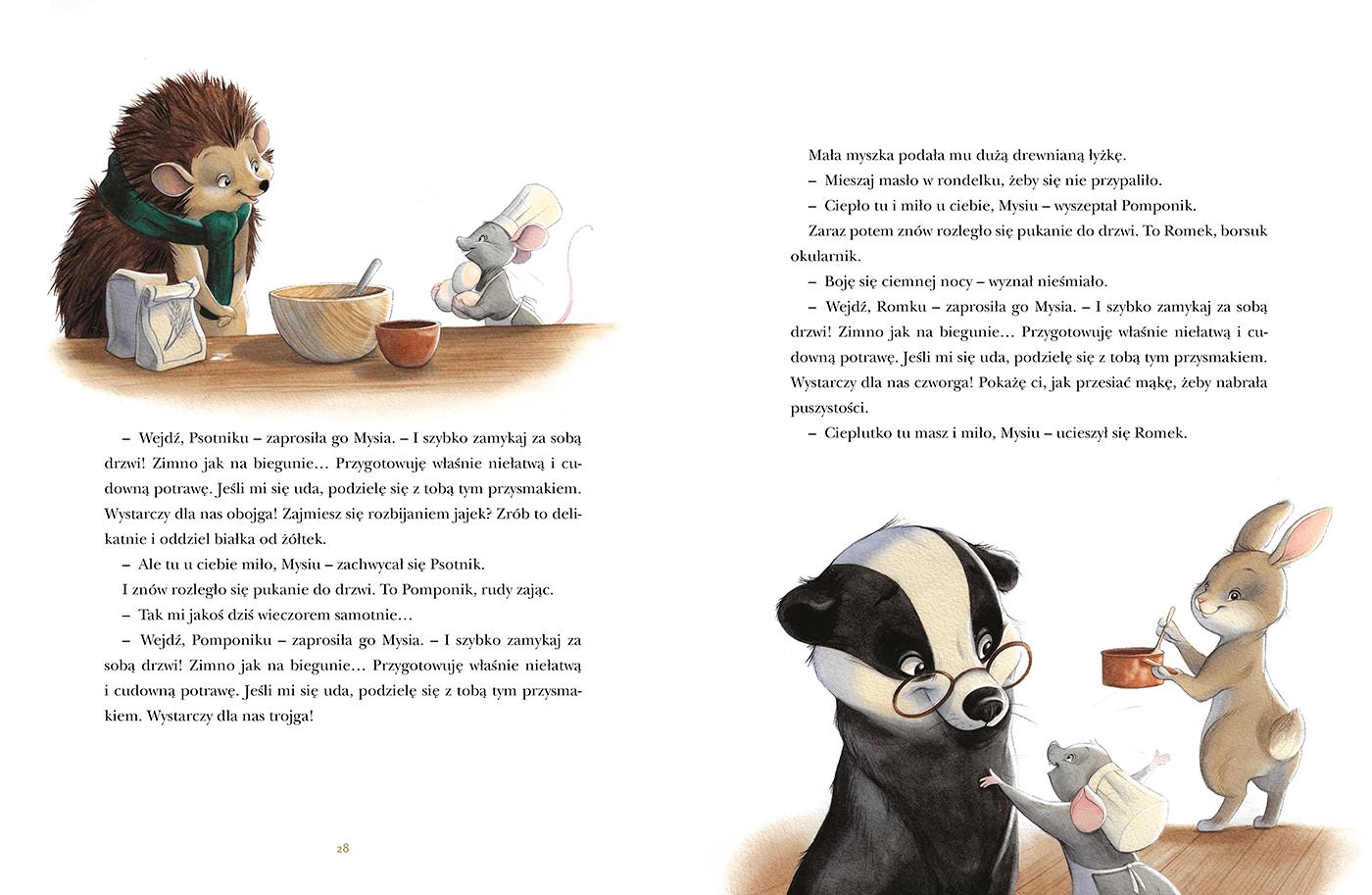 Gdy za oknem zimowy mrok i chłód, warto mieć pod ręką przepełnione ciepłem historie. Najmłodsi czytelnicy będą zachwyceni wspólnym odkrywaniem czułych opowieści, które czekają na nich w tej barwnej książce. Starsi zaś poczują dziecięcą radość, rozgrzewającą serca podczas długich zimowych wieczorów. Bohaterami tych historii są urocze króliki, owieczki, mały jeż, wielki niedźwiedź i inne zwierzęta. Jeśli lubicie świat Beatrix Potter, słynnej angielskiej ilustratorki i pisarki, pokochacie także opowieści Karine-Marie Amiot z pięknymi ilustracjami Julie Mellan, które otulają niczym ciepły kocyk i zachęcają do wspólnego czytania.Szczegółowe informacje na temat książki Zimowe opowieści babci